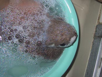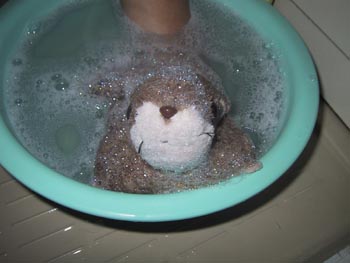 ばしゃばしゃー。たのしー。きゅきゅー! ん?なに?