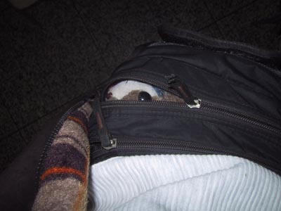ももんが今回のお出かけモード。まわりに見つからないようにこっそり覗いてりゅの。