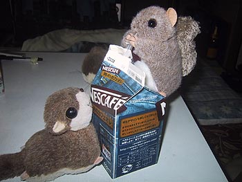 手でストロー抑えてコーヒー牛乳飲んでりゅの。すごいぞむさびー!