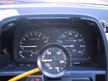 純正のスピードメーターのみのメーターassyを、PGM-FI用タコメーター付きのものに換装。その後バキュームメーターを装着。エンジンの負圧(負荷みたいなもの)がわかるようになりました。